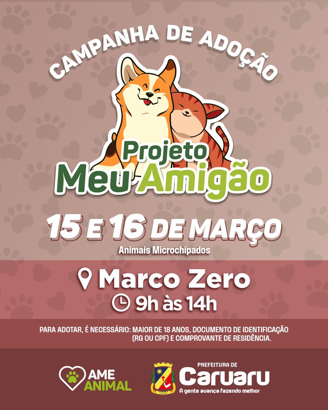 A Prefeitura de Caruaru, por meio da Secretaria de Serviços Públicos e Sustentabilidade e da AME Animal, promove nos dias 15 e 16 de março, mais uma edição da Feirinha de Adoção Responsável de Animais deste ano.